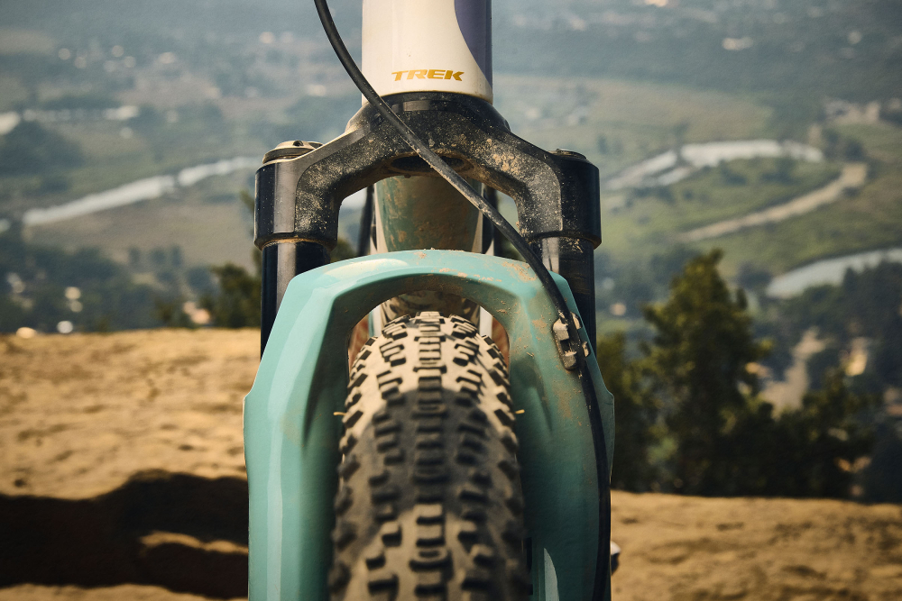 CheckOUT je bil zasnovan za 55 mm hoda zadnjega blažilca RockShox SIDLuxe. Ker pa ni bilo primerne sprednje vilice s kratkim hodom in dovolj prostora za plašče, je Trek z RockShoxom razvil popolnoma novo vilico Rudy XL. Ta omogoča: