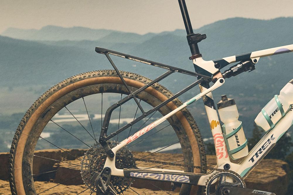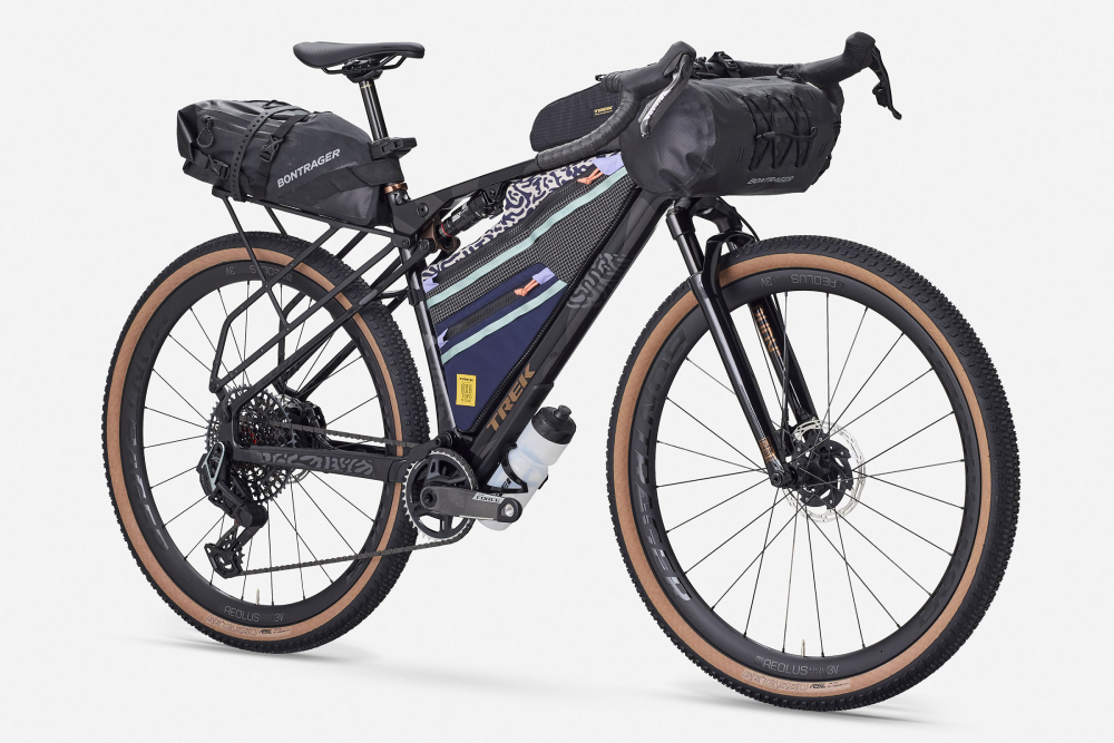 Za glavni trikotnik je Trek sodeloval s Topo Designs in ustvaril torbo po meri v barvah kolesa. Ima dve glavni zadrgi, “bolt-on” pritrjevanje in pisan izbor materialov.