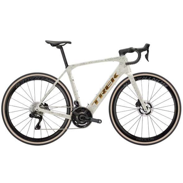 Ponuja tih in izjemno gladek potisk motorja TQ HPR60, ki poskrbi, da so dolge vožnje pravi užitek. Opremljen je s prestavnim sistemom Shimano Dura-Ace Di2 2x12 za izjemno hitro in natančno elektronsko prestavljanje, karbonskimi obročniki Bontrager Aeolus RSL OCLV, karbonskimi gonilnimi rokami, karbonsko sedežno oporo ter karbonskim krmilom Bontrager Aero Pro, ki učinkovito duši tresljaje s slabših cest.