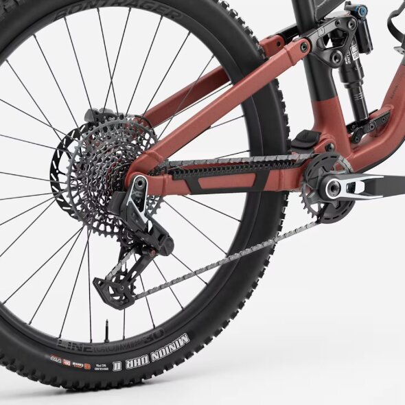 Trek Fuel EX 9 X0 AXS je trail bajk, pripravljen za praktično vse terene. Začenja se z Alpha NEXT Platinum aluminijastim okvirjem, opremljenim s kompletom vzmetenja RockShox Ultimate (145 mm hoda zadaj, 150 mm spredaj), ki z lahkoto obvlada tako tehnične kot tekoče odseke poti. Brezžični pogon SRAM X0 Eagle AXS zagotavlja natančno in mehko prestavljanje tudi pod obremenitvijo, medtem ko štiribatne zavore SRAM Maven Silver nudijo odlično modulacijo in zanesljivo zavorno moč, ko postane teren zares zahteven.
