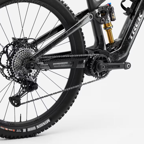 Trek Fuel+ EX 9.8 XT je prilagodljivo karbonsko električno gorsko kolo, pripravljeno na vzpone v nebo in sanjske spuste. Njegov okvir iz karbona OCLV Mountain Carbon zagotavlja gladek zagon motorja TQ HPR-60, medtem ko vam tovarniško vzmetenje Fox Factory (145 mm zadaj, 150 mm spredaj) zagotavlja izjemno gladek nadzor na težkih terenih. Mehanski 12-stopenjski pogon Shimano XT zagotavlja čisto in zanesljivo prestavljanje, 4-batne zavore XT M8200 pa odlično modulacijo in hitro zaviranje.