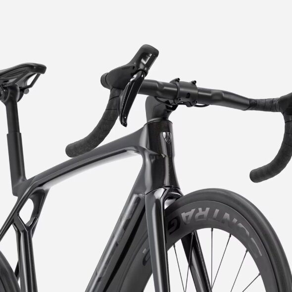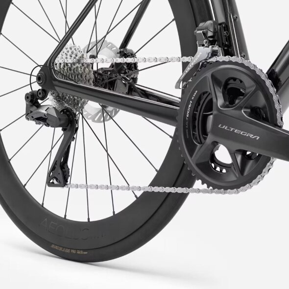 Ponaša se z brezžično elektronsko prestavno skupino Shimano Ultegra Di2, ki vedno poskrbi za gladko in natančno prestavljanje, celoten paket pa dopolnjujejo karbonski obročniki, karbonsko krmilo in karbonski nosilec krmila za maksimalno lahkotnost in zmogljivost.