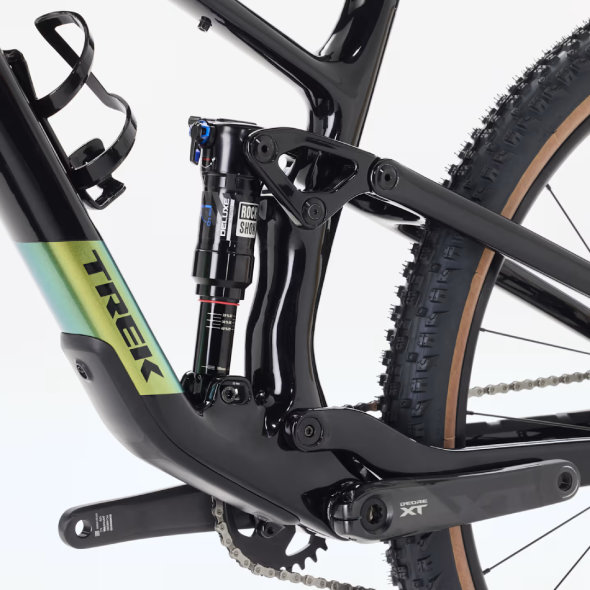 Zasnovano za hitre vzpone in igrive spuste, kjer ostaja odzivno in zabavno. S 120 mm zadnjega in 130 mm sprednjega hoda ter RockShox vzmetenjem (vilice Pike Select+ in amortizer Deluxe Ultimate) samozavestno premaguje korenine in skale. Brezžični 12-redni Shimano XT Di2 pogon pa poskrbi za izjemno gladko in hitro prestavljanje.