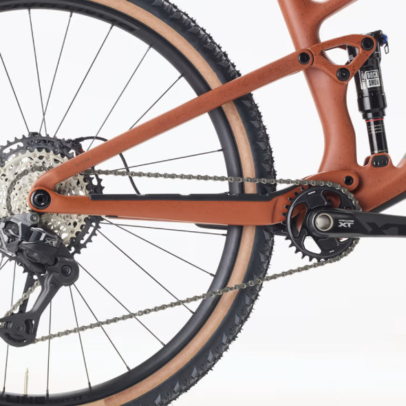 OCLV Mountain Carbon, internal storage, tapered head tube, internal guided routing, downtube guard, alloy rocker link, 4-way Mino Link, ABP, Boost148, 120 mm travel